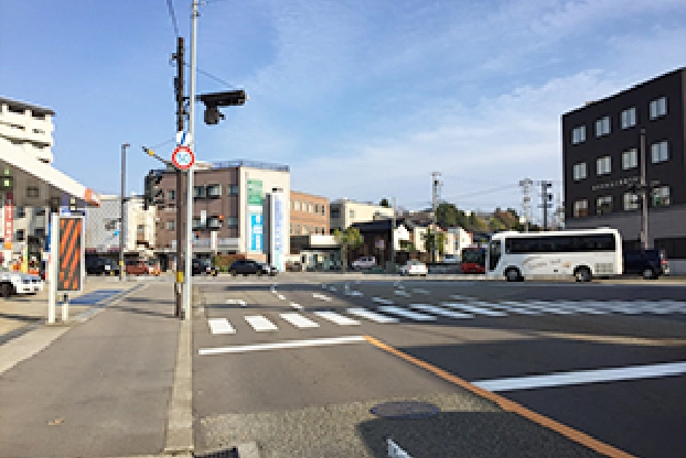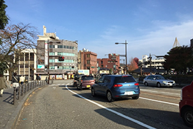 Exit the mountainside circular road and head towards Kanazawa Station, keeping to the left at the Y-shaped intersection.