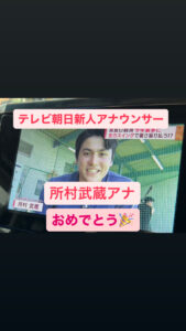 Instagramでも投稿しましたが、当院ファミリーのテレビ朝日新人アナウンサー、「所村武蔵」さんが初出演してました^_^